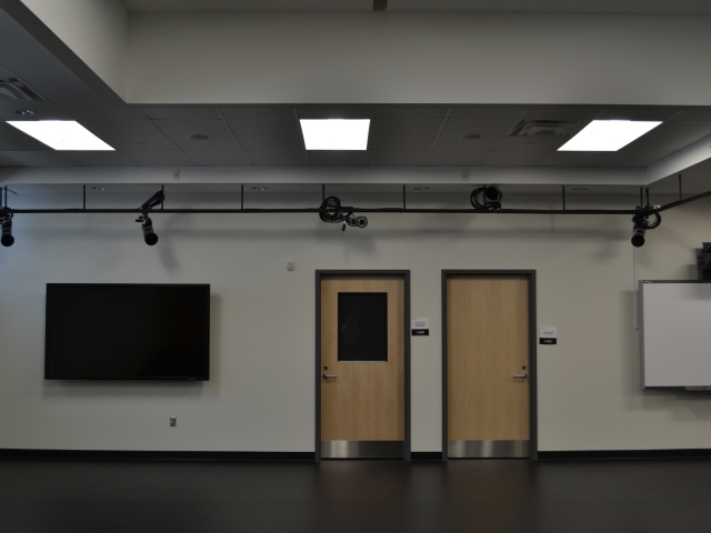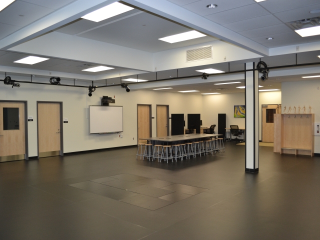 The Lab itself features a large primary motion capture space, surrounded by a ceiling-mounted camera bar and centred around a custom force plate grid; a fully equipped neuromuscular testing laboratory; two student office spaces and computer workstations; a large meeting table; motorized blackout blinds; an 80″ LCD Flatscreen and a 100″ SmartBoard, both fully controllable via a state-of-the-art audio-visual system with Apple TV; and much more. Your research options are truly unlimited in this wonderful space!